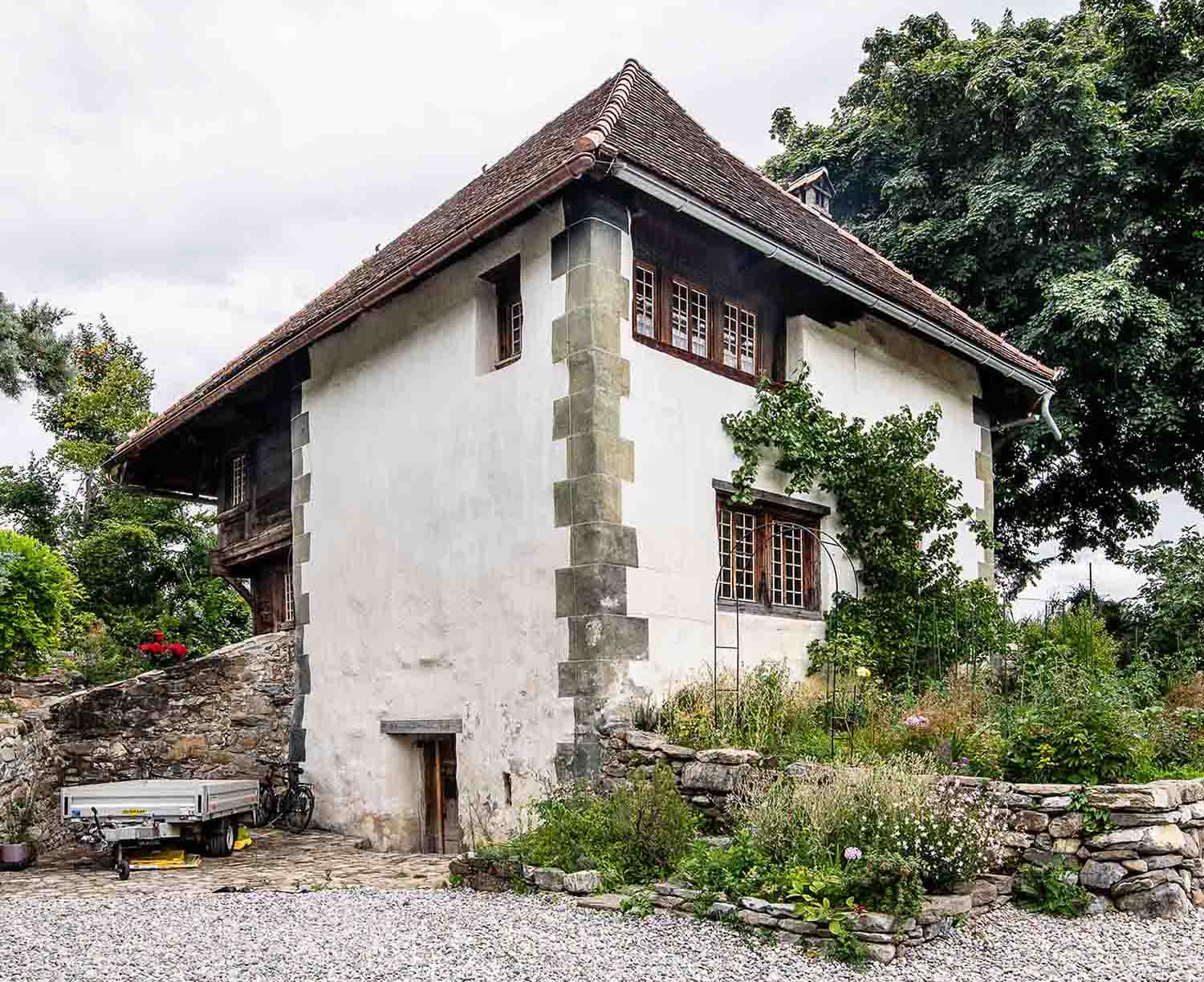 Das erhaltenswerte Bauernhaus wurde ausgebaut und mit Neubauten ergänzt (Foto: Architektur Stauffer AG).Planen im Bestand – Auseinandersetzung mit dem eigenen Ort
