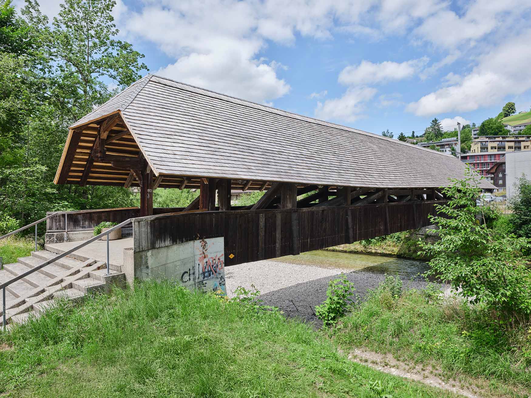 Die Brücke ist ein wichtiger Übergang für Fussgängerinnen und Fussgänger (Foto: Bahoz Issa).Langnau – Schindeldach zeigt die Verbundenheit mit der Region