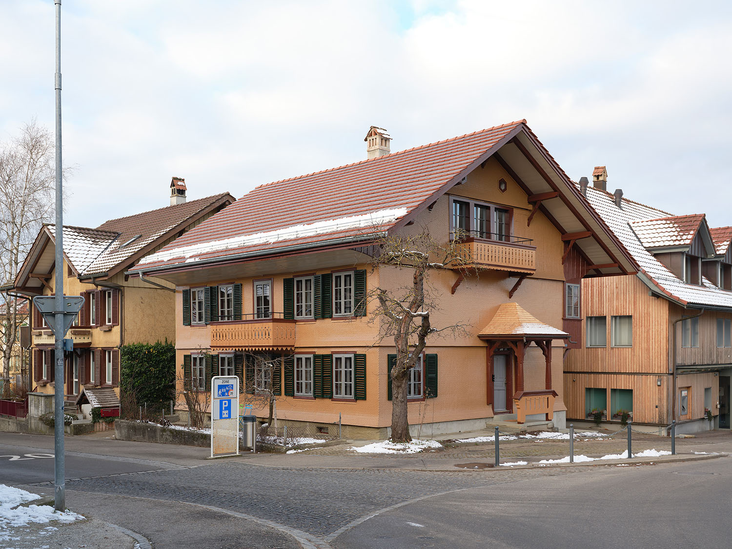 Das prächtige bäuerliche Wohnhaus mit original erhaltener klassizistischer Gestaltung nimmt im Ortsbild eine wichtige Stellung ein (Foto: Dipl. Malermeister Menz AG).Wangen an der Aare – Raum für Wohnen und Kultur im Bütschlihaus