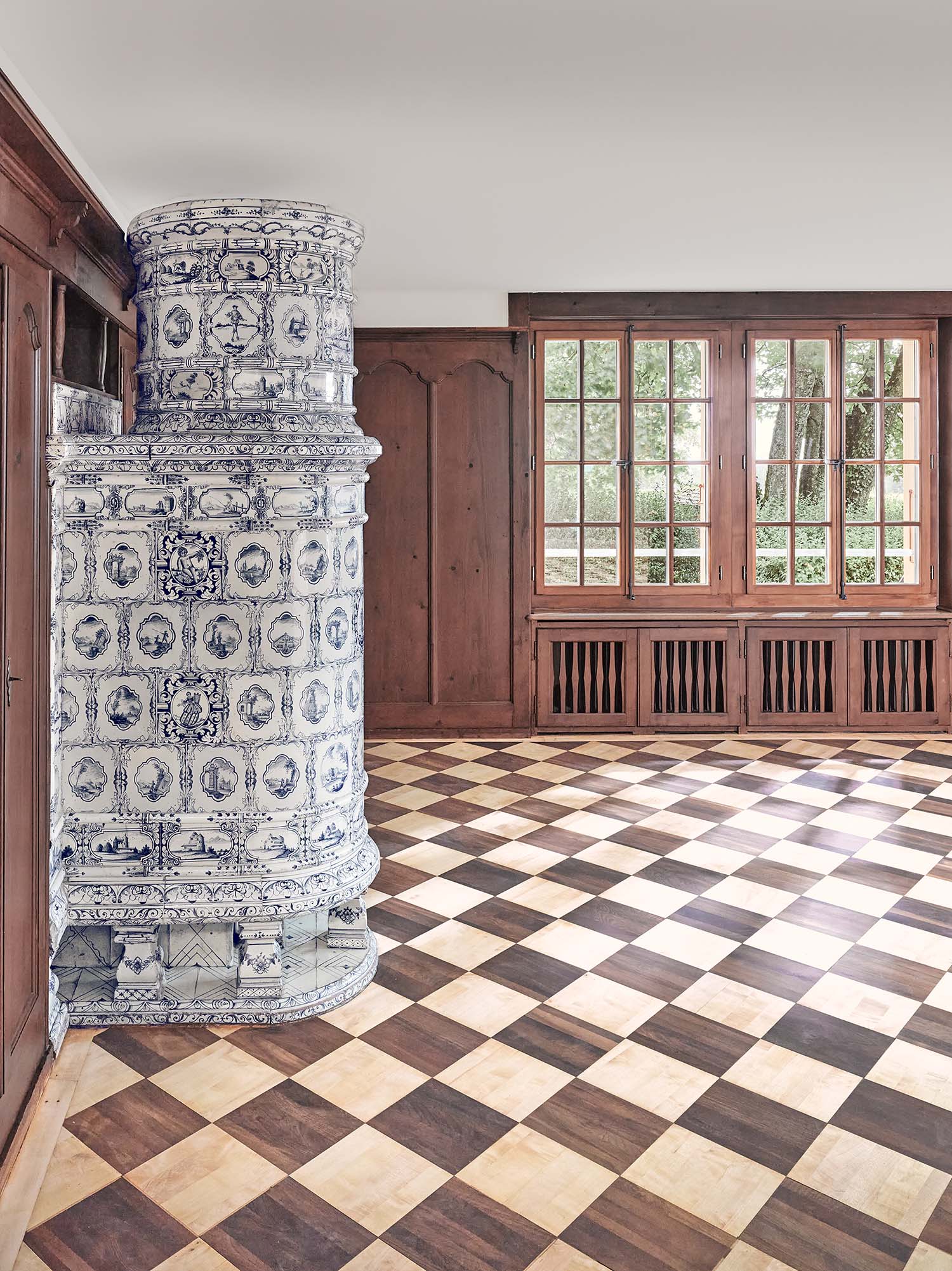 Auch der Ofen aus dem 18. Jahrhundert der Manufaktur Landolt wurde restauriert (Foto: Stefan Hofmann).