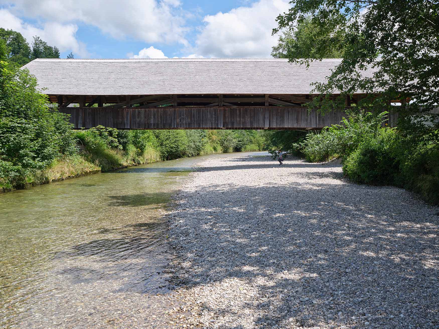 Die Moosbrücke in Langnau von 1797 gehört zu den bedeutendsten Holzbrücken des Emmentals. Mit einer Gesamtlänge von 19,6 Metern ist sie ein beeindruckendes Beispiel für den barocken Holzbrückenbau. Ursprünglich führte sie weiter flussabwärts über die Ilfis, wurde aber 1974 an ihren heutigen Standort versetzt. Seitdem ist sie ein wichtiger Übergang für Fussgängerinnen und Fussgänger, die zur Bad- und Sportanlage gelangen wollen.