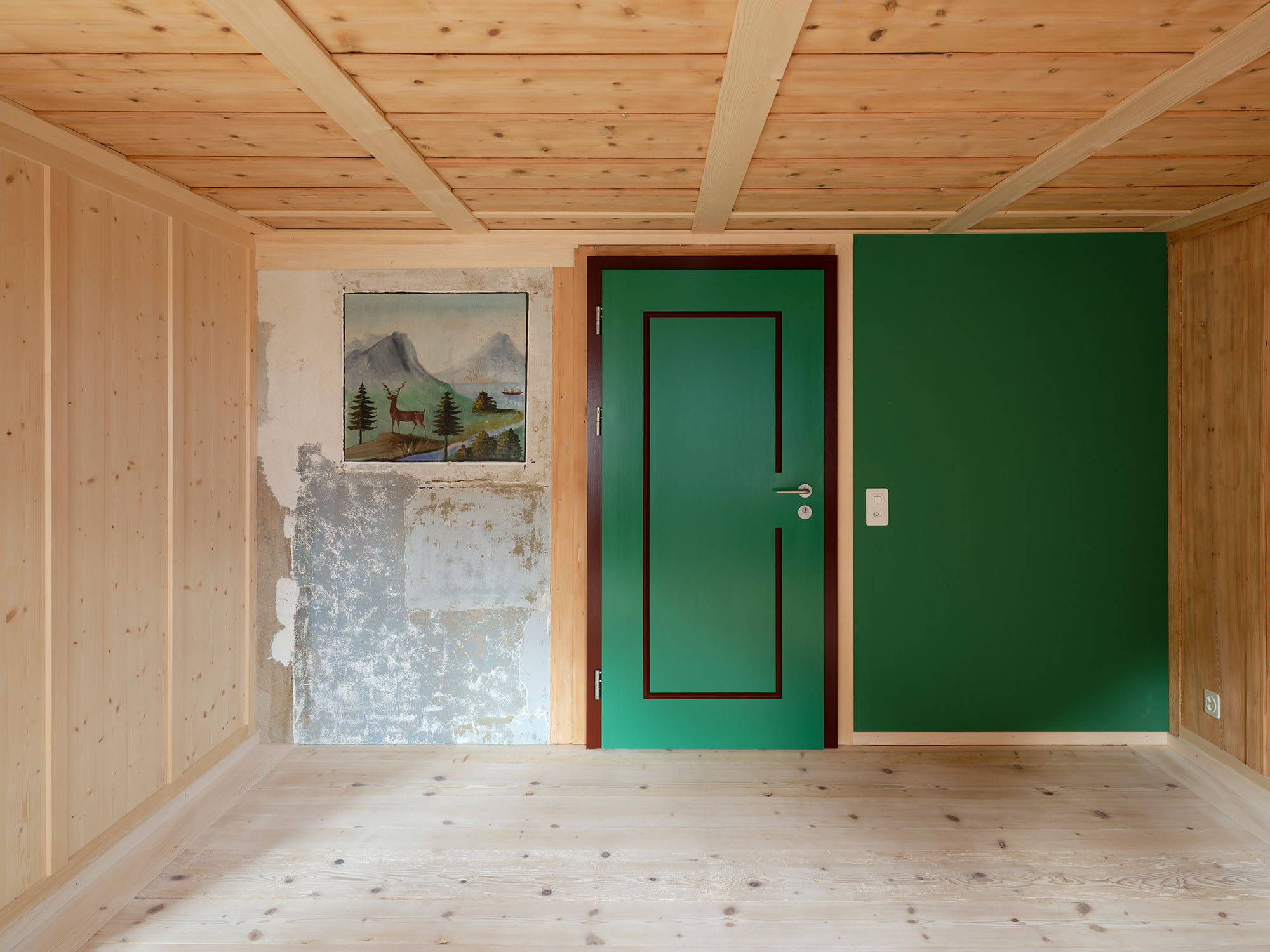 Kräftige Farben im den Innenräumen betonen den Charakter des Hauses. Das vorbildliche Nutzungskonzept orientiert sich eng an der ursprünglichen Struktur und schafft so eine gelungene Verbindung von Alt und Neu. So wurde dem einfachen Gebäude mit viel Engagement neues Leben eingehaucht.