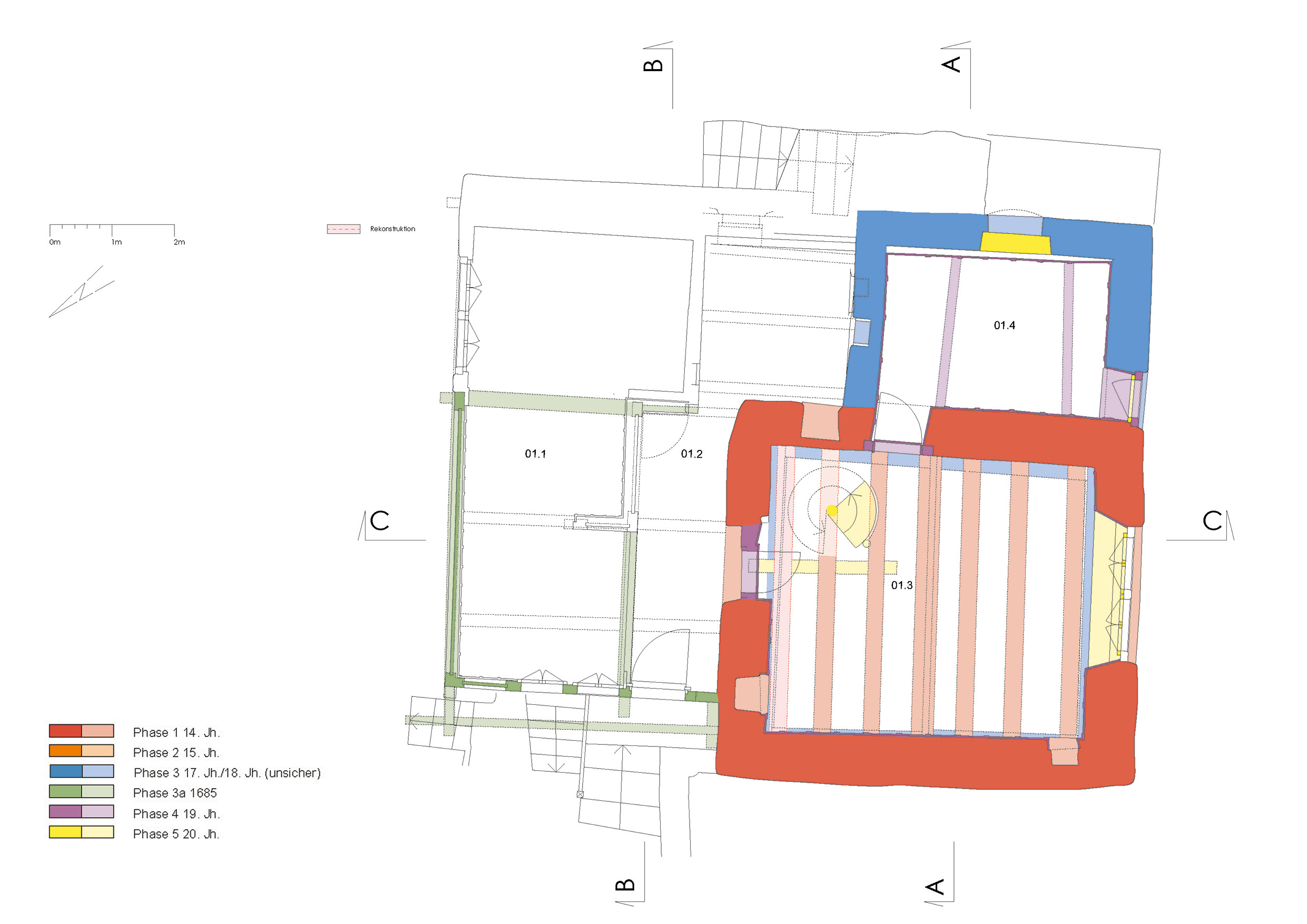 Bauphasenplan, Grundriss Erdgeschoss (Plan: Albrecht Spieler).