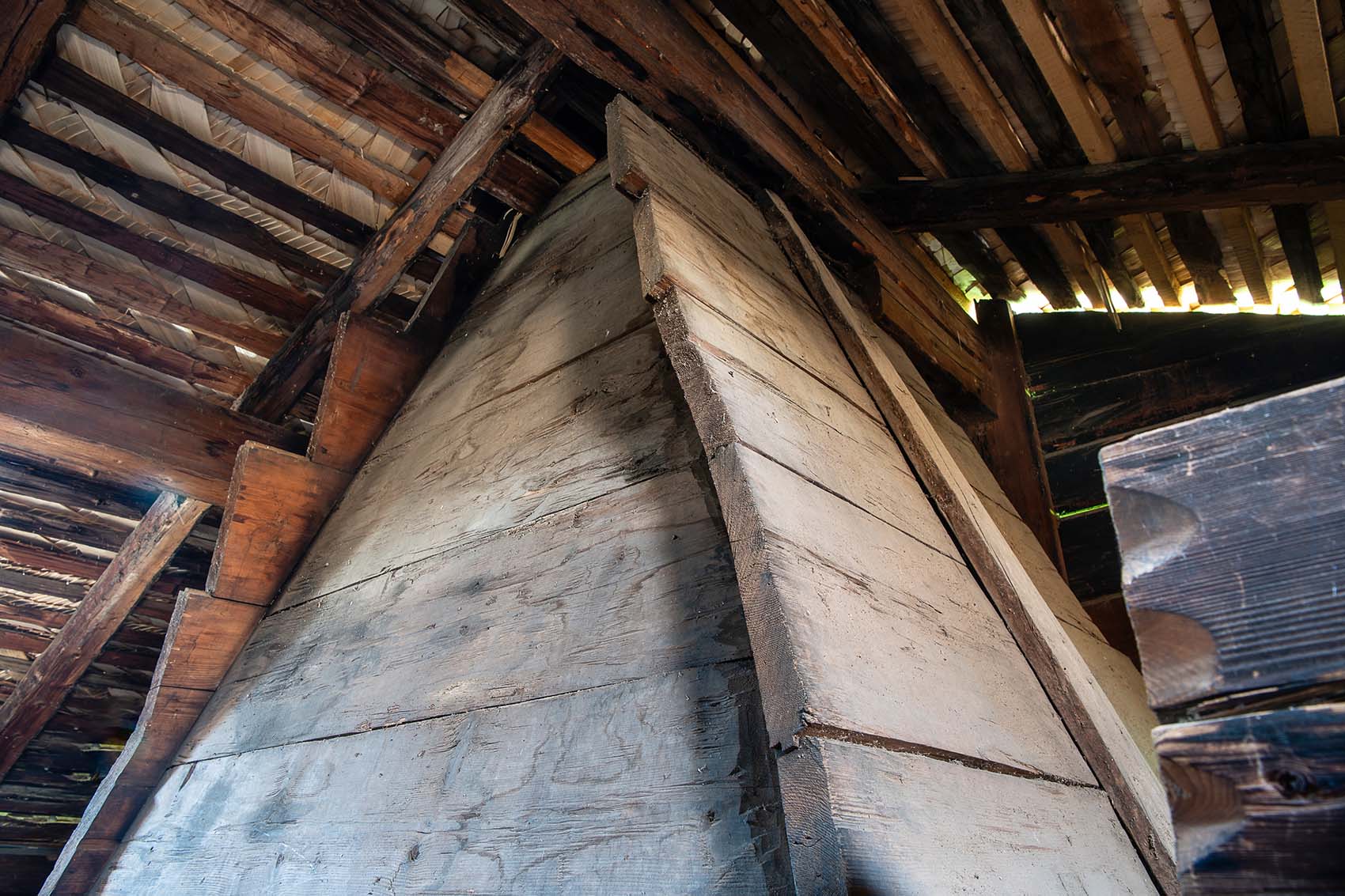 La cheminée en planches est entièrement conservée (photo : Christian Helmle).