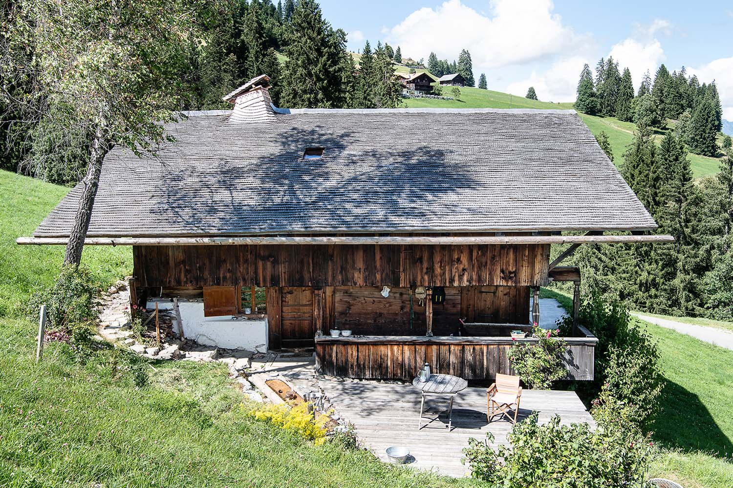 Le toit en tavillons, de dimensions plutôt inhabituelles, vient d’être restauré avec beaucoup de savoir-faire et d’amour du détail. Pour les tavillons, on a choisi du bois d’épicéa de la région et non du mélèze, souvent utilisé, mais qui ne pousse pas ici. Le choix de la durabilité, donc.
