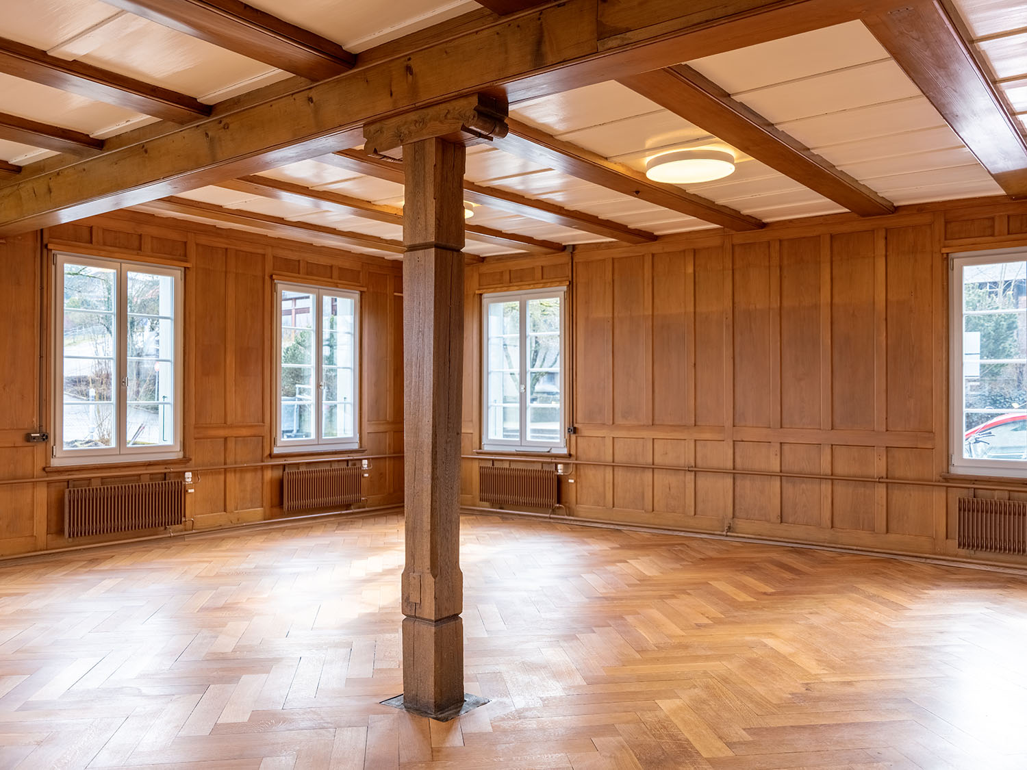 Les lambris et les plafonds à l’intérieur ont été conservés et les couleurs d’origine ont été reconstituées (photo : Pawlik + Wiedmer GmbH).